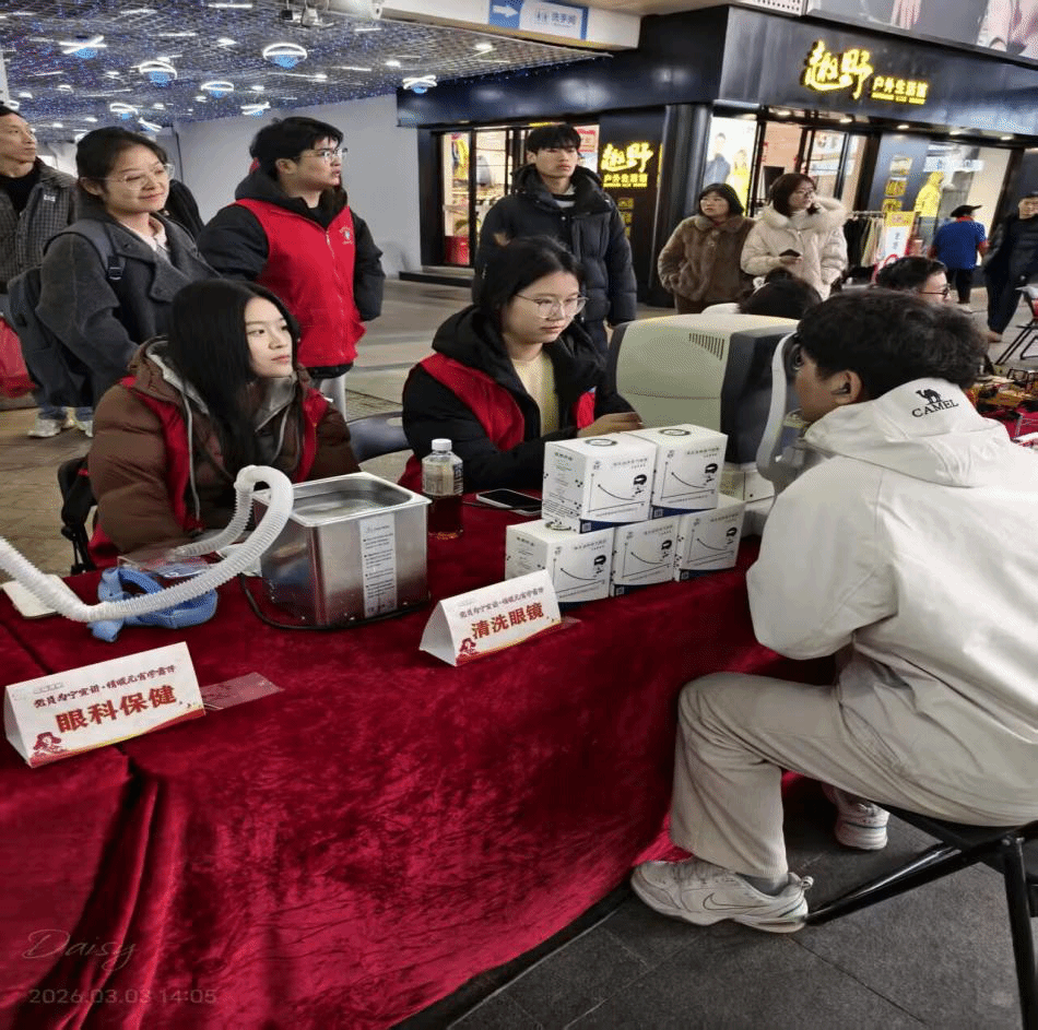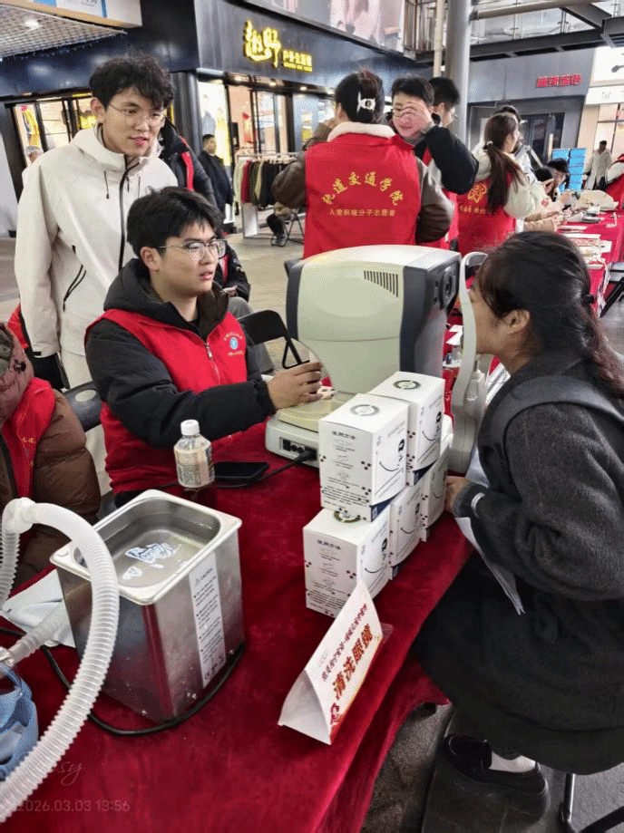 3月3日下午,江宁区文鼎广场举办2026年江宁区“党员为宁宣讲·情暖元宵学雷锋”主题活动,永利yl23411集团“光明天使”志愿服务社团受邀参加。该社团以“材艺筑梦”志愿服务队为载体,将专业志愿服务与社会公益服务深度融合,凭借专业的眼健康服务,赢得了现场市民的广泛赞誉。