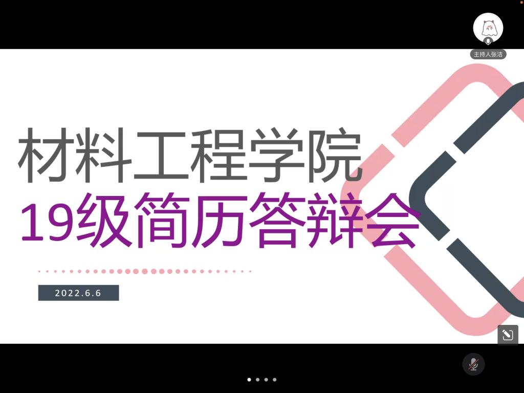 为培养我院学子专业素养,提高职场实践技能,展现青春风貌和进取态度, 6月6日晚,永利yl23411集团举办以“简青春风采,历职场未来”为主题的19级简历大赛线上答辩会。永利yl23411集团党委副书记陈智慧、材料科学与工程系主任林青、功能材料系主任张小娟、复合材料与工程系副主任庞娟、珠宝系蔡逸涛老师,19级各班班主任出席活动,永利yl23411集团学生代表参加。