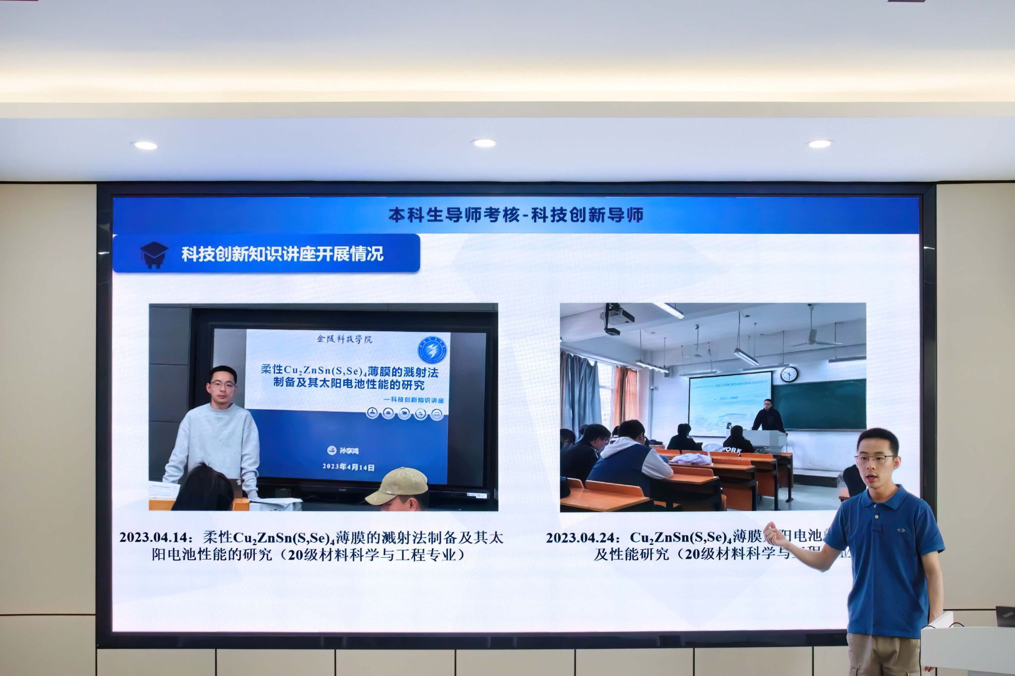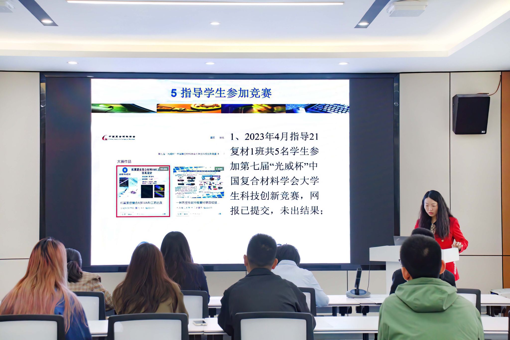 在汇报中,张小敏、王昆彦、蔡逸涛、王玲、刘宜群、王昭、孙孪鸿、周凝瑞等八位本科生导师依据考核评议标准分别从工作态度、专业知识讲座开展、学习方法讲座开展、指导学生参加竞赛及获奖情况、指导学生申请专利及发表论文等方面介绍了一年来的工作成果和取得的优异成绩,并分享了作为本科生导师在培养学生过程中收获的一些心得感悟。陈智慧副书记对本科生导师们的辛勤付出表示了充分肯定,并希望大家能联系专业与学院特色,进一步将育人元素融入教育教学全过程。