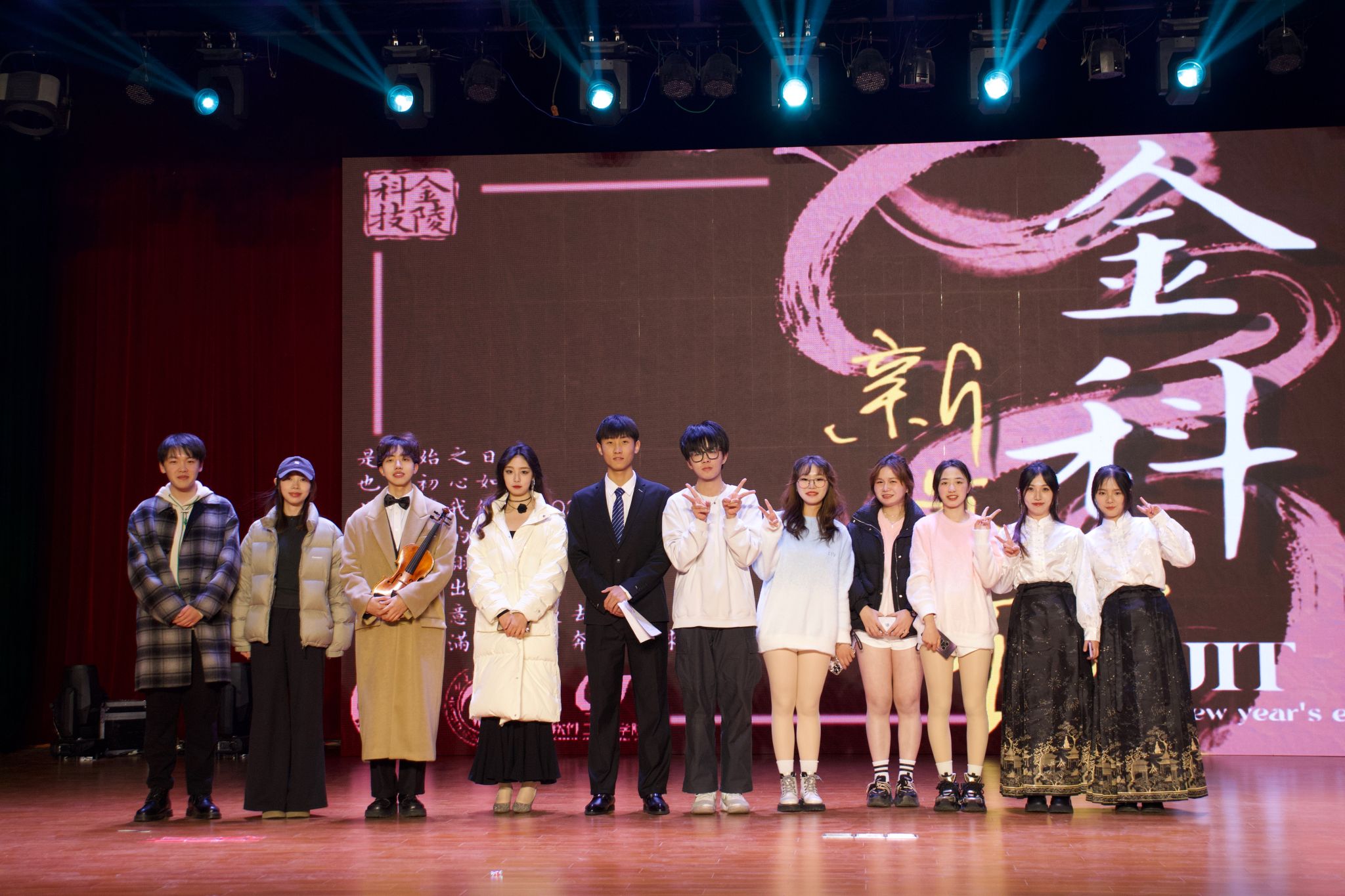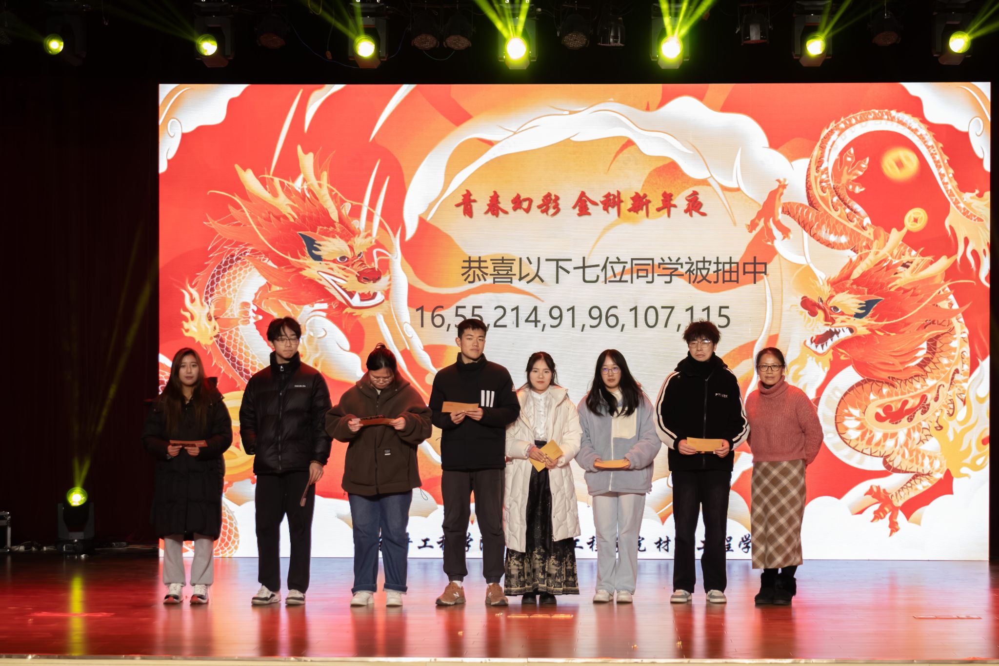 晚会开始前,各院领导、学生代表通过微视频向同学们送来新年的祝福,永利yl23411集团党委副书记陈智慧对2023年学习、科研、实践等各方面取得的优异成绩做了总结,寄语同学们珍惜时间、勤奋学习、挺膺担当。晚会的节目精彩纷呈,第一幕“跃动青春”中,我院陈域用柔美曼妙的舞姿演绎《入画江南》,唐睿、柳承志用磁性的嗓音献唱《飘向远方》,他们将歌舞中蕴含的情感表达地淋漓尽致。接着来到激动人心的抽奖环节,在副书记陈智慧的倒数声中,七位幸运儿诞生,他们怀着激动的心情走上舞台领取奖品。第二幕“幻彩金科”中,我院伍彬玥、张雨欣共赋一曲《战台风》,她们的指尖在琴弦上灵活跳跃,行云流水般的演奏流淌出动人的旋律。第三幕“绽放未来”中,我院姚骏鸿和张郁垚合作献上小提琴钢琴二重奏《匆匆那年》,琴弦和琴键迸出的旋律交织在一起,时而缠绵悱恻,时而激烈碰撞,演绎出一曲令人陶醉的乐章;随后我院刘文强、李洁等人带来热情洋溢的舞蹈串烧,以激情和力量诠释每一个节拍,将舞蹈的动感传递给观众。兄弟学院的节目也是精彩纷呈,气氛热烈。最后,整场晚会在大合唱《稻香》中圆满落下帷幕。