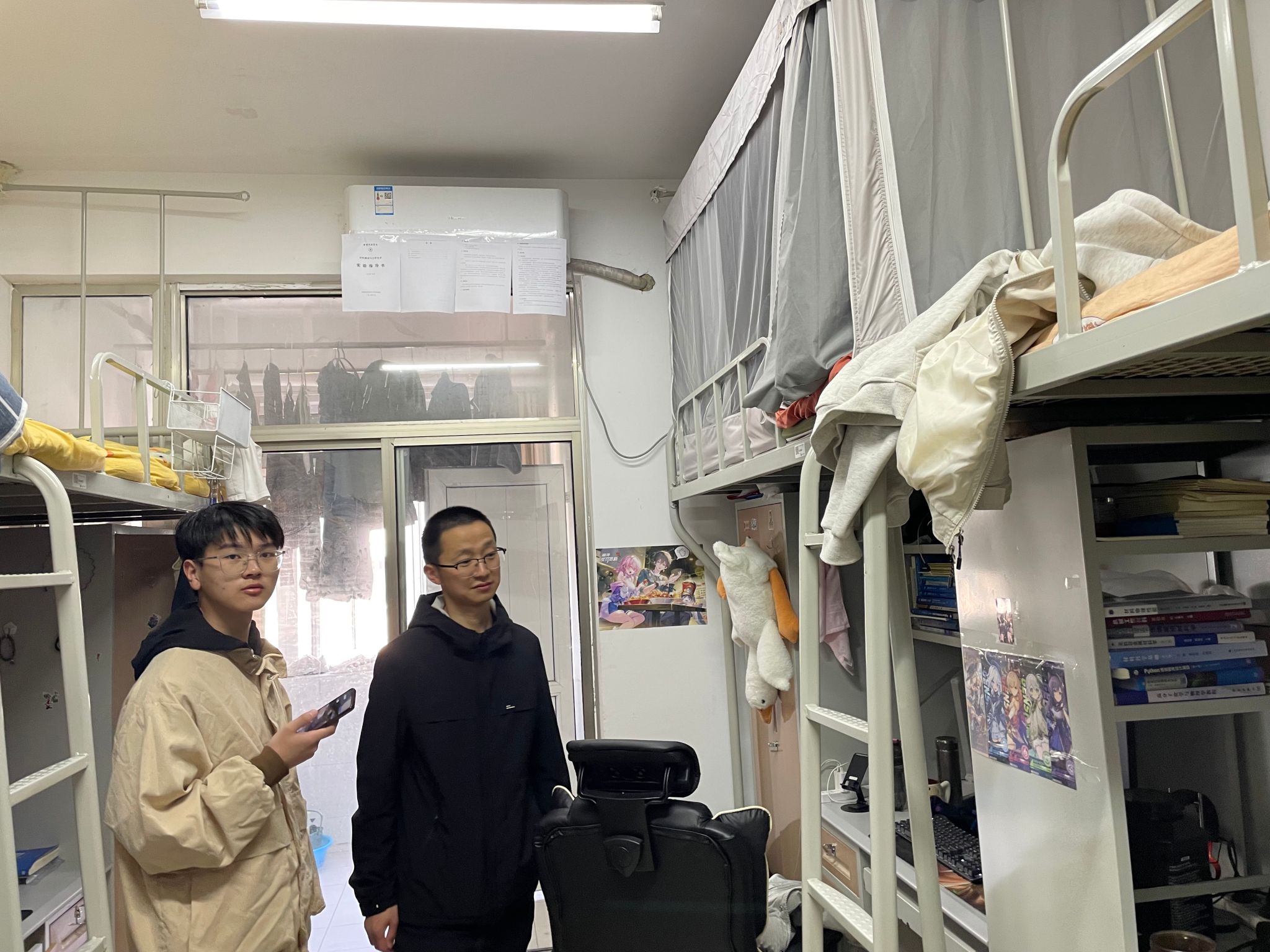 本次宿舍检查及文明宿舍评选活动重点围绕宿舍卫生环境、用电安全、消防督导、反诈教育、学习氛围、心理健康等方面开展。检查发现,大部分宿舍的卫生状况良好,同学们能自觉遵守宿舍管理规定,保持宿舍整洁和安全。赵志伟老师对宿舍卫生及安全情况较好的宿舍进行了表扬,同时对存在安全隐患的宿舍提出了整改要求,提醒同学们要提高安全意识,杜绝使用大功率电器,严防安全隐患。此外,各位辅导员老师与同学们都交流了学习生活情况,鼓励他们珍惜大学时光,在自律中学习,在安全中成长。
