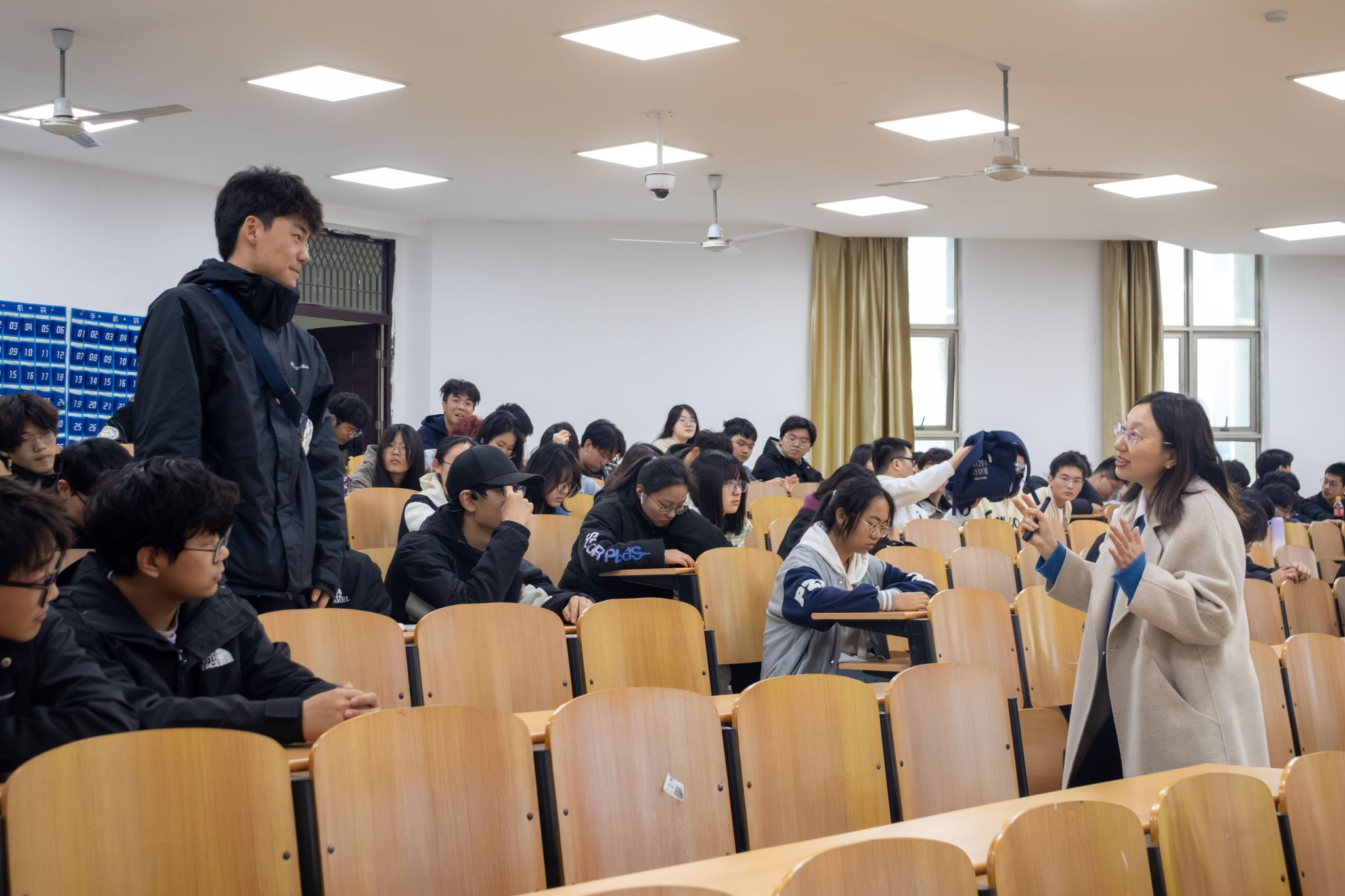 在本次交流会上,王玲教授主要以个性定制眼镜为切口,从近视管理、个性定制框架和镜片的必要性及应用等多个方面展开讲解,并且对基于个性定制框架眼镜的精准近视管理验配技术的发展前景做出热切展望。在互动环节,同学们积极踊跃地提问,王教授耐心地为同学们解惑答疑,分享视光行业最新的动态和趋势,为同学们提供宝贵的学术指导和职业建议。