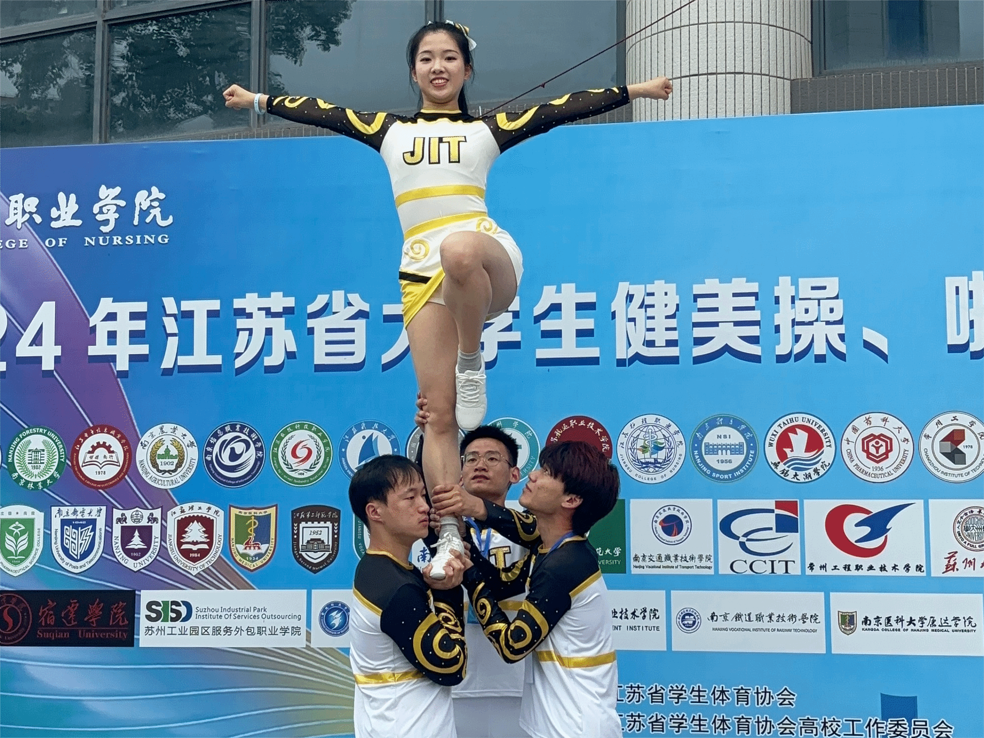 5月24日-26日,由江苏省学生体育协会主办,江苏省学生体育协会高校工作委员会和江苏护理职业学院共同承办的“2024年江苏省大学生健美操、啦啦操、街舞锦标赛”在淮安市江苏护理职业学院隆重举行。本次大赛吸引了全省众多高校的精英队伍,共1400多名运动员参赛,我校蓝屿啦啦操队共有20名学生参加了本次大赛的普通高校双人花球项目和技巧啦啦操自选项目,并取得普通高校组啦啦操团体总分第二名的成绩。我院学生左佳杰表现优秀,助力校队取得优异成绩。