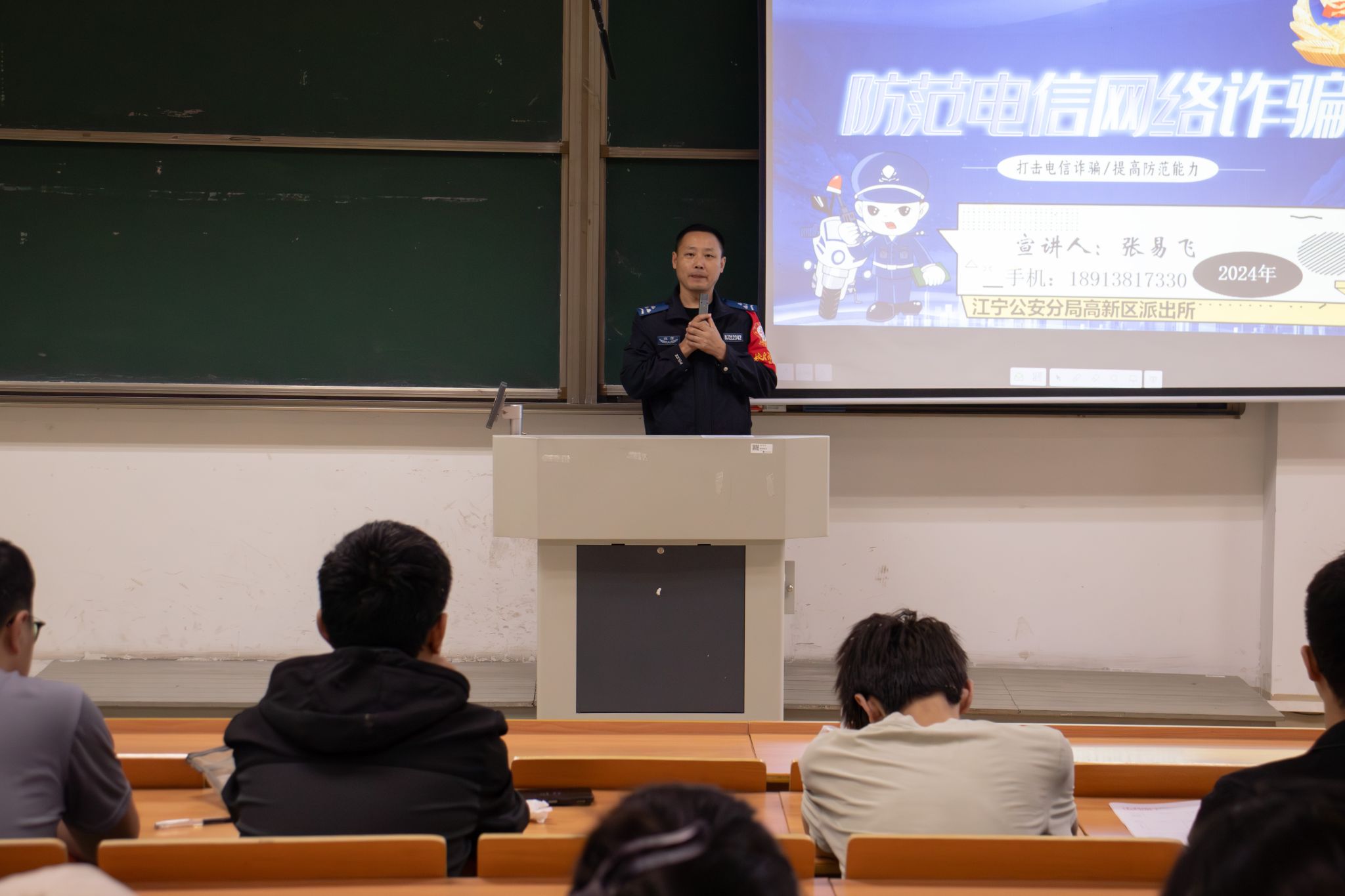 为切实做好防范电信网络诈骗宣传教育工作,加强反诈力度,永利yl23411集团特邀江宁公安分局高新区派出所的张易飞警官于10月14日至18日分批次对全院学生开展了反诈宣讲会,我院学子积极参加宣讲会,认真聆听与学习。