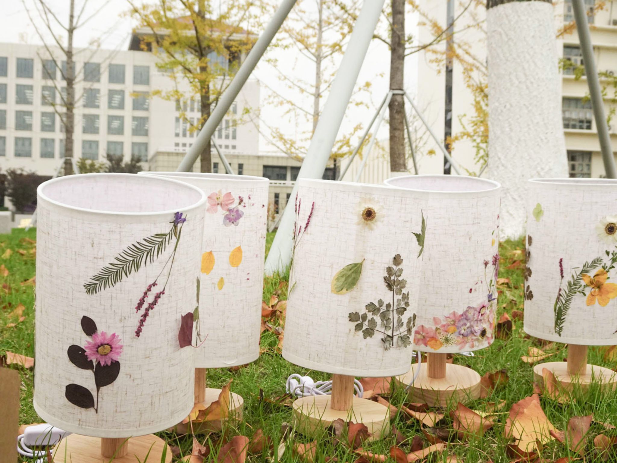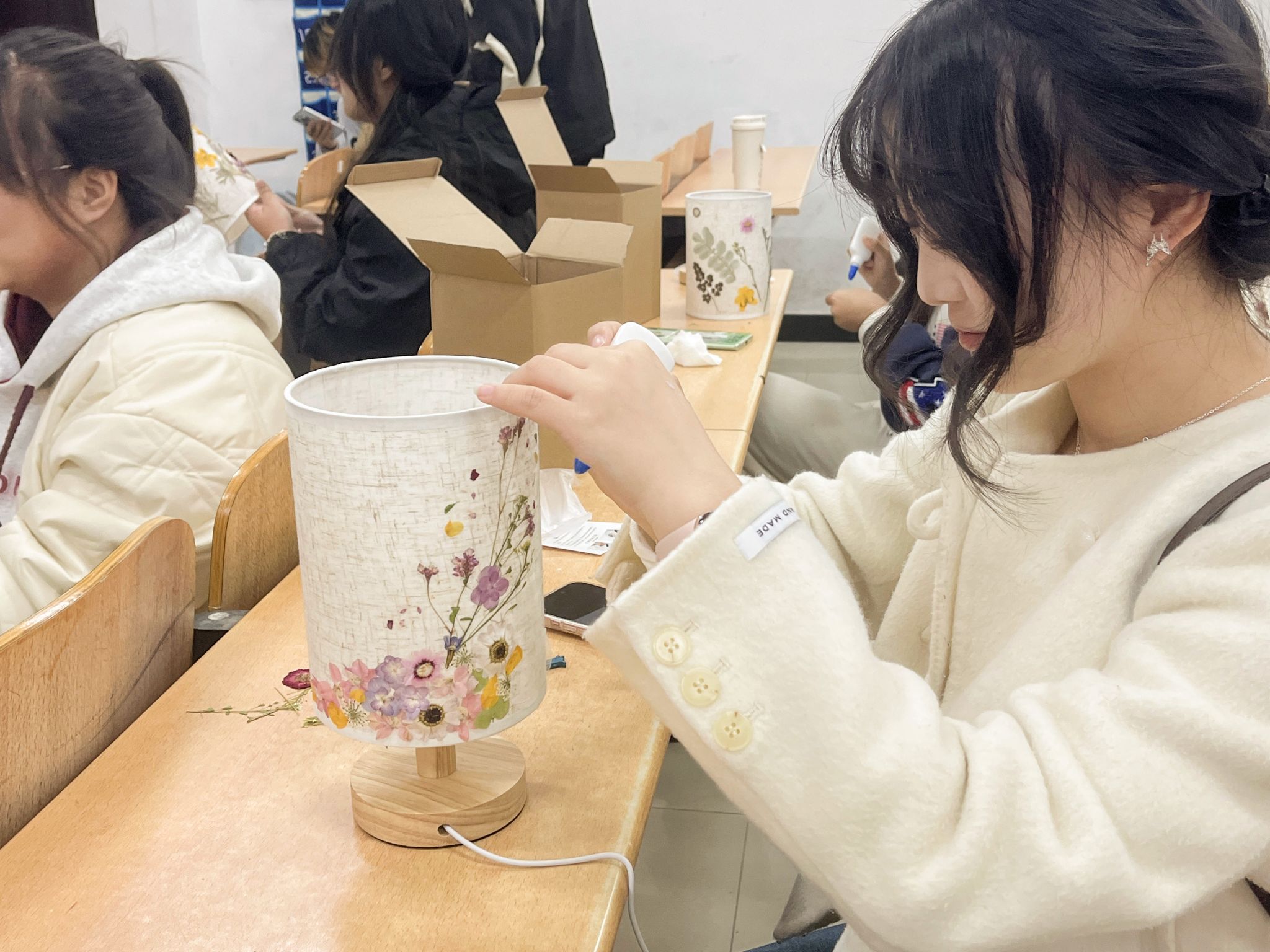 活动现场,主持人首先详细介绍了“花草灯”的历史底蕴、制作材料以及制作流程等。接着,同学们充分发挥想象力和创造力,亲手设计灯型、搭建框架,选取自己喜爱的鲜花与绿叶进行剪裁、折叠、粘贴、拼接,并巧妙地将其装饰在灯具上。现场气氛热烈,大家纷纷沉浸在温馨浪漫的手作氛围中,尽情享受手工制作的乐趣。不一会儿工夫,一盏盏独具特色的“花草灯”映入眼帘。同学们通过将花草错落排布成各种美丽的图案来体现自己的奇思妙想,有的装饰着缤纷的花朵,有的点缀着嫩绿的枝叶,色彩斑斓,美不胜收。