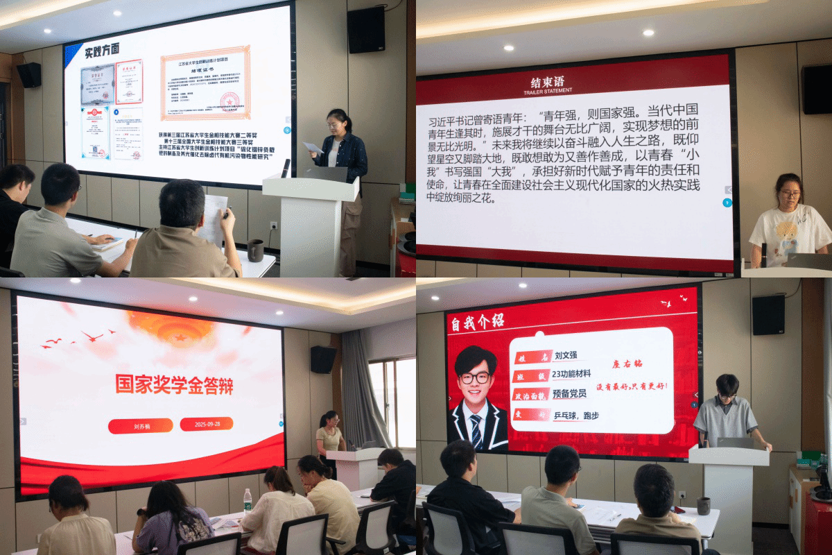经前期个人申报及班级推荐,共13名候选学生脱颖而出参加评选。答辩过程中,候选学生围绕思想方面、学业成绩、科研实践、社会服务等展开全方面展示。他们表达清晰,自信流畅,手中的荣誉既记录了追梦路上的点滴,也彰显了我院学子厚积薄发、昂扬向上的精神风貌。