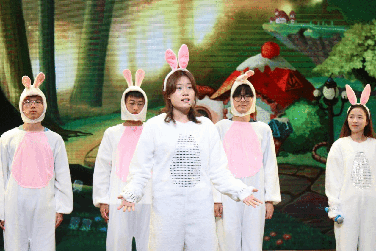 伴随孩子们的欢声笑语,精彩纷呈的表演如期启幕。心理社的志愿者们用一场充满哲思与温情的情景朗诵《I want 兔》,带领大家走进孩子们内心的奇妙宇宙。该剧通过七只小兔子的成长困惑与心灵呐喊,生动探讨了“接纳独特自我”与“多元成长价值”的主题,传递出了特殊教育中“尊重差异、拥抱独特”的温暖信念。接着,志愿者们还发放了精心准备的小礼品,在孩子们惊喜的欢呼声中将现场气氛推至了高潮。