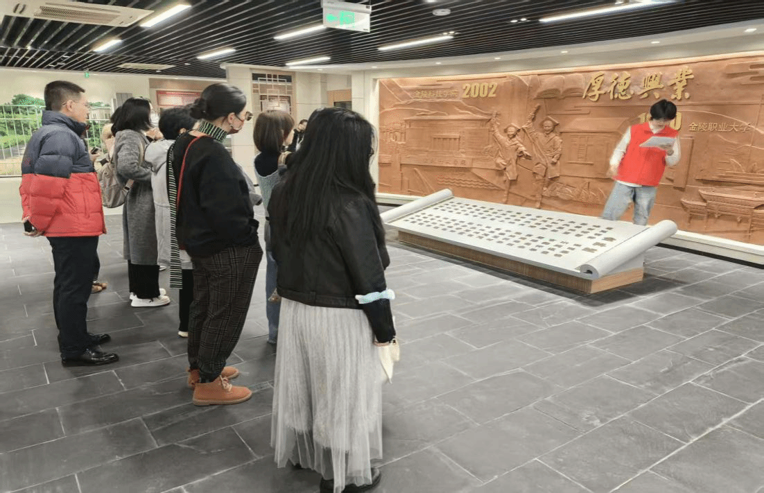 校友们在珠宝系在校学生的引领下,首先参观了校史馆。在讲解员的引导下,大家沿着学校历史发展的脉络徐徐前行。从初创时期的艰辛到如今跨越式发展的成就,一幅幅图片、一件件实物、一段段影像,生动再现了学校数十年来砥砺前行的奋斗历程。重温求学岁月,感慨母校日新月异的变化与沉淀深厚的底蕴。