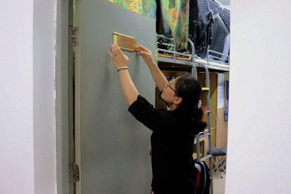 在挂牌之前,老师和同学们走访了各个星级宿舍,陈书记对星级宿舍的优异表现给予了充分的肯定,同时强调星级宿舍应该承担起榜样示范作用,希望在检查中有脏、乱、差及不文明现象的宿舍能以文明宿舍为榜样,尽快整改到位;也希望星级宿舍的同学们能继续保持,再接再厉。最后,陈书记亲自为获得星级宿舍的宿舍挂牌,并合影留念。