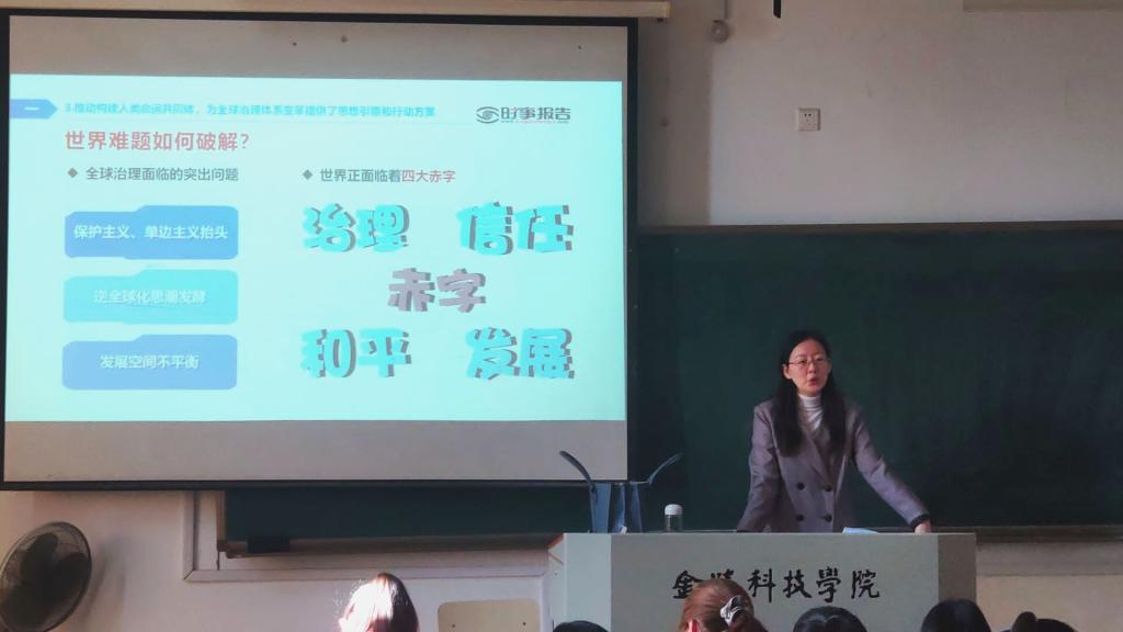 讲座伊始,关雯文老师阐明了构建人类命运共同体是世界大势,是人类社会发展趋势的准确把握和科学判断。关老师指出,在当今和平发展的世界仍存在许多问题,但我国依旧能坚持共商共建共享的全球治理观,充分发挥全球和区域多边机制的建设作用,与他国共同推进人类命运共同体。最后,关雯文老师强调,在疫情期间,我国在实际行动上推进人类命运共同体的建设,积极帮助周边国家及欠发达地区应对疫情所带来的影响。我国的的防疫举措切实维护了全人类的利益,为全球治理化发展贡献力量,真正展示了大国担当。