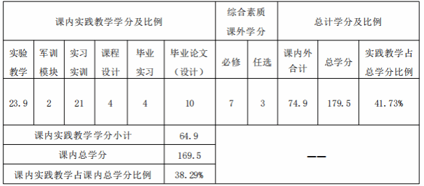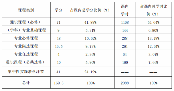 1.课内总学分指毕业生要达到的总学分(不含综合素质课外培养 10 学分);