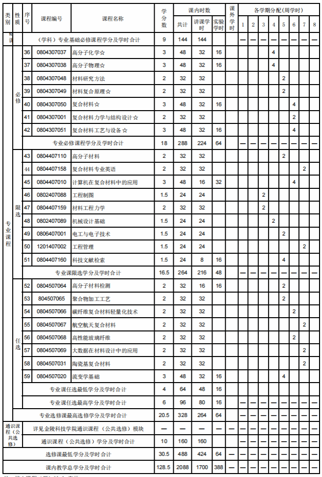 课程编号:0804307050 课程名称:复合材料 总学时:48 周学时:2